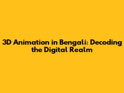 3D Animation In Bengali: Meaning, Techniques, And Uses