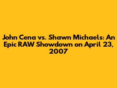 The WWE Universe, guys, remembers certain matches. These aren't just any matches; they're the ones that stick with you, the ones you talk about with your friends for years. One such classic encounter took place on April 23, 2007, when John Cena and Shawn Michaels locked horns on Monday Night RAW. This wasn't just a regular match; it was a battle of titans, a clash of two of the biggest names in wrestling history, and it delivered in every possible way. The atmosphere was electric, the action was non-stop, and the outcome was unforgettable. Let's dive into what made this match so special and why it continues to be celebrated by wrestling fans around the globe. It was more than just a wrestling match; it was a storytelling masterpiece told within the squared circle. Cena, the then-WWE Champion, was at the height of his popularity, embodying the never-give-up attitude that resonated with millions. Michaels, a seasoned veteran and a living legend, brought his unmatched in-ring prowess and dramatic flair to the table. This contrast in styles and personalities added an extra layer of intrigue to the match, making it a must-see event. From the moment the bell rang, it was clear that this wasn't going to be a walk in the park for either competitor. Cena, known for his strength and resilience, met his match in Michaels, whose agility and technical skills were second to none. The match was a rollercoaster of emotions, with both wrestlers trading blows, near falls, and submission attempts. The crowd was on its feet, chanting and cheering, fully invested in the drama unfolding before their eyes. It was a perfect blend of athleticism, showmanship, and storytelling, showcasing the very best of what professional wrestling has to offer. The match transcended the typical good versus evil narrative, presenting a complex dynamic where respect and competition coexisted. Cena, despite his dominant persona, had to dig deep to counter Michaels' strategic offense. Michaels, on the other hand, utilized every trick in his arsenal to try and dethrone the champion. This created a sense of unpredictability, keeping fans guessing until the very end. The significance of this match also lies in its place within the broader context of WWE history. It was a time when RAW was a flagship show, consistently delivering high-quality matches and storylines. Cena and Michaels were two of the pillars of the brand, and their rivalry was a major draw for viewers. Their April 23rd encounter not only lived up to the hype but also set a new standard for what a main event match could be. It was a testament to their dedication, skill, and ability to connect with the audience on a profound level. Ultimately, the Cena versus Michaels match on April 23, 2007, was more than just a wrestling match; it was a moment in time that captured the essence of what makes professional wrestling so captivating. It was a showcase of athleticism, drama, and storytelling, all rolled into one unforgettable package. For fans who witnessed it live or have watched it since, it remains a cherished memory and a reminder of the magic that can happen when two legends collide in the ring. So, next time you're looking for a dose of wrestling nostalgia, be sure to revisit this classic encounter. You won't be disappointed.