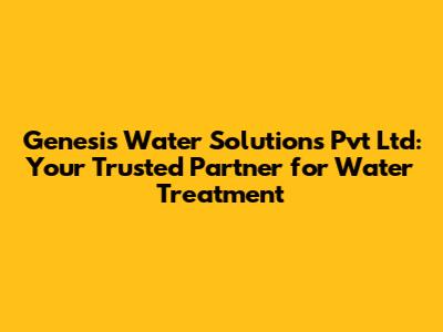 Hey there, water enthusiasts! Today, we're diving deep into the world of Genesis Water Solutions Pvt Ltd, a company making waves â or should I say, treating them â in the water treatment industry. This article will be your comprehensive guide, covering everything from what they do to why they're a top choice for your water needs. So, grab a refreshing glass of purified water (thanks to companies like Genesis!), and let's get started. We'll explore their services, how they stand out from the crowd, and what makes them a reliable partner for both residential and industrial water treatment solutions. Get ready to learn about the importance of clean water and how Genesis Water Solutions is playing a crucial role in ensuring it for everyone.