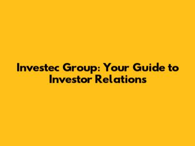 Investec Group: Your Guide To Investor Relations