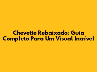 Chevette Rebaixado: Guia Completo Para Um Visual Incrível