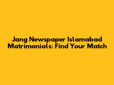 Jang Newspaper Islamabad Matrimonials: Find Your Match