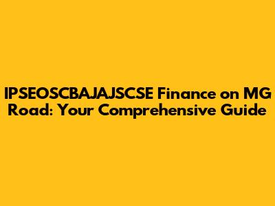 Alright, guys, let's dive into everything you need to know about IPSEOSCBAJAJSCSE Finance specifically concerning MG Road. Whether you're a student, a professional, or just someone curious about financial services in this area, this guide is tailored just for you. We'll break down what IPSEOSCBAJAJSCSE Finance might entail, its potential relevance to MG Road, and how to navigate financial solutions effectively. Buckle up, because we're about to demystify the financial landscape!