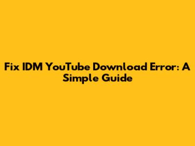 Fix IDM YouTube Download Error: A Simple Guide