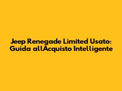 Ciao amici appassionati di motori! Siete alla ricerca di un Jeep Renegade Limited usato? Ottima scelta! Questa piccola SUV è un vero gioiello, perfetta per chi cerca un'auto versatile, adatta sia alla città che alle avventure off-road. Ma come trovare il miglior affare? In questa guida completa, vi sveleremo tutti i segreti per acquistare un Jeep Renegade Limited usato in modo intelligente, evitando fregature e assicurandovi un ottimo rapporto qualità-prezzo. Preparatevi a scoprire tutto quello che c'è da sapere, dalle quotazioni di mercato ai controlli fondamentali da effettuare prima dell'acquisto, fino ai consigli per negoziare il prezzo.