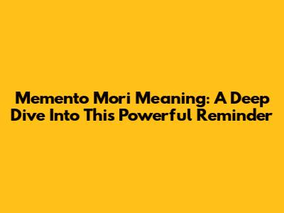 Memento Mori Meaning: A Deep Dive Into This Powerful Reminder