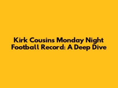 What's up, football fanatics! Today, we're diving deep into the stats of a quarterback who's become quite the talking point when it comes to Monday Night Football: Kirk Cousins. You know, the guy who's had his fair share of high-profile games under the bright lights of primetime. We're going to break down his performance on Mondays, looking at the numbers, the wins, the losses, and what it all means for his legacy. So, grab your favorite game-day snack, settle in, and let's get this party started!