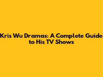 Kris Wu Dramas: A Complete Guide To His TV Shows