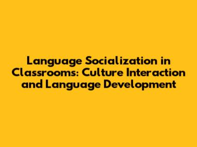 Language Socialization In Classrooms: Culture & Development
