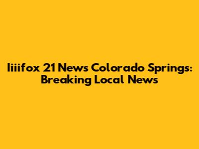 Iiiifox 21 News Colorado Springs: Breaking Local News