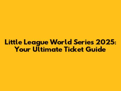 Little League World Series 2025: Tickets, Prices & More!