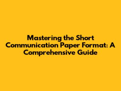 Mastering The Short Communication Paper Format: A Comprehensive Guide