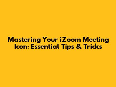 Mastering Your IZoom Meeting Icon: Essential Tips & Tricks