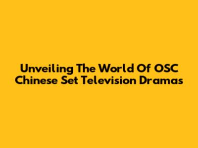 Unveiling The World Of OSC Chinese Set Television Dramas