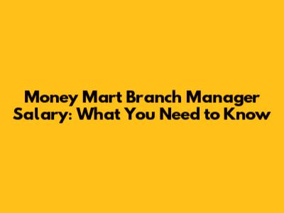 Breaking Down the Money Mart Branch Manager Salary Components