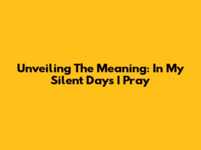 Unveiling The Meaning: 'In My Silent Days I Pray'