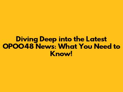 Diving Deep into the Latest OPOO48 News: What You Need to Know!