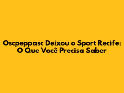 Oscpeppasc Deixou O Sport Recife: O Que Você Precisa Saber