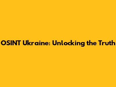 OSINT Ukraine: Unlocking The Truth
