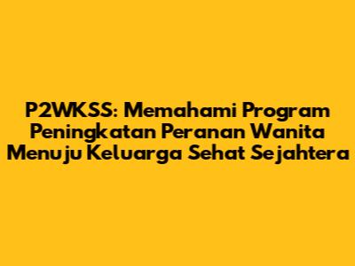 P2WKSS, atau singkatan dari Program Peningkatan Peranan Wanita Menuju Keluarga Sehat Sejahtera, adalah sebuah program pemerintah Indonesia yang dirancang untuk meningkatkan kualitas hidup perempuan dan keluarga. Guys, program ini bukan cuma sekadar singkatan huruf, ya. Di baliknya ada tujuan mulia untuk memberdayakan perempuan, meningkatkan kesehatan keluarga, dan mewujudkan kesejahteraan masyarakat secara keseluruhan. Mari kita bedah lebih dalam mengenai P2WKSS ini, mulai dari pengertian, tujuan, manfaat, hingga bagaimana program ini bekerja.