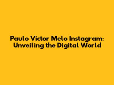 Hey guys! Ever wondered about Paulo Victor Melo and his presence on Instagram? You're in the right place! We're diving deep into the digital world of Paulo Victor Melo, exploring his Instagram profile, and uncovering what makes his online presence so captivating. This article is your ultimate guide, packed with insights, tips, and everything you need to know about navigating Paulo Victor Melo's Instagram universe. From his posts to his followers and the overall vibe of his account, we'll break it all down for you. So, buckle up, because we're about to embark on a fun journey through the lens of Paulo Victor Melo's Instagram!