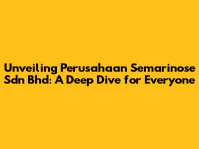 Unveiling Perusahaan Semarinose Sdn Bhd: A Deep Dive for Everyone