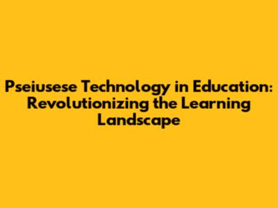 Pseiusese Tech's Impact On Modern Education
