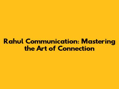 Rahul Communication: Strategies For Effective Interaction