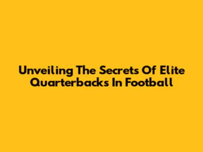 Unveiling The Secrets Of Elite Quarterbacks In Football