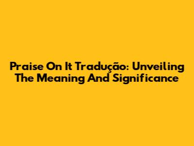 Praise On It Tradução: Unveiling The Meaning And Significance