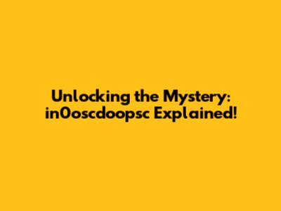 Unlocking The Mystery: In0oscdoopsc Explained!