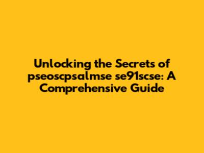 Unlocking The Secrets Of Pseoscpsalmse Se91scse: A Comprehensive Guide