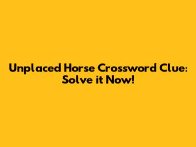 While AGILE is the most frequent answer to "unplaced horse," crossword puzzles are notorious for their cleverness and occasional ambiguity. Depending on the specific puzzle, there might be alternative solutions that fit the clue. Here are a few possibilities to consider: