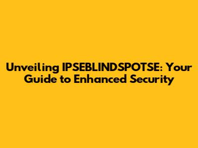 Unveiling IPSEBLINDSPOTSE: Your Guide To Enhanced Security
